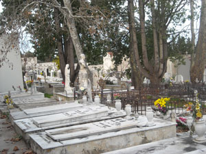 L’11 marzo 1817 fu pubblicata in Napoli la Legge che stabiliva la costruzione dei camposanti fuori dell’abitato in tutti i Camuni continentali del regno entro il termine di tre anni. La relativa spesa era a carico dei Comuni. La stessa legge stabiliva che dal giorno di apertura del camposanto era vietato “generalmente e senza veruna eccezione, di seppellire i cadaveri umani in qualsiasi altro luogo, dentro o fuori l’abitato…” I Comuni, però, soprattutto per motivi economici, continuavano a ritardarne la costruzione. Nel 1831, il Governo chiese la nota di tutte le cappelle gentilizie esistenti nei Comuni del Vallo. Il decurionato di Patti, con deliberazione del 17 marzo 1839, destinò per camposanto “un pezzo di terreno davanti la chiesa del convento dei Padri Cappuccini…” Nel bilancio del successivo anno, il decurionato inserì la voce con relativa spesa “ Fondo per la costruzione del camposanto, giusta gli ordini dati, ducati 300”. Succedeva intanto, che, in applicazione della legge, le Autorità civili facevano chiudere le sepolture nelle chiese senza aver provveduto alla costruzione del camposanto. Finalmente, nel 1842, il Comune di Patti presentò il suo progetto al Ministero dell’Interno, che l’approvò. Tutto però, restò sulla carta e nel 1844 il Comune dichiarava che la costruzione non era possibile per le ristrettezze economiche. Nel 1854, allo scopo di seppellire i morti di colera, una parte del terreno adiacente il convento fu ceduta al Comune per uso di Camposanto e a questo fine venne eretto anche un fabbricato per la conservazione delle casse mortuarie (carnala). Costituitosi il regno d’Italia e sollecitato dal nuovo governo, il Consiglio, su proposta del Sindaco, il 15.5.1864 deliberò scegliersi come locale adatto per il Cimitero, la selva del convento dei PP. Cappuccini, autorizzando la giunta a far redigere opportuna relazione da un perito. Due anni dopo fu promulgata la legge 7.7.1866 sulla soppressione delle Corporazioni religiose e tutto il complesso fu prima incamerato dallo Stato e, con successivo atto del 10.12.1867, ceduto al Comune. Per la chiesa venne stabilito il semplice rapporto d’uso con l’obbligo dell’ufficiatura. Tuttavia, ancora per alcuni anni si continuò ad usare, come luogo di sepoltura, la piccola cappella costruita nel 1854. Nel 1870, viste le crescenti richieste e considerato che occorrevano i fondi per ripararla, il Comune stabilì di applicare delle tariffe; quelli i cui parenti non potevano pagare dovevano inumarsi nelle fosse. Il 29.9.1870 una commissione scelta dal Prefetto si portò sul posto per definire la pratica del cimitero e, pur riconoscendo che il luogo era adatto per la parte igienica, per la distanza dal centro abitato e per l’estensione del terreno, constatò che i caratteri geologici del terreno non corrispondevano a quelli voluti dalla legge, perché il terreno era argilloso, difficile a scavarsi e facilmente umido. Ma poiché tutto il suolo che circonda Patti è argilloso, si pensò di modificare il terreno mescolandovi una quantità di arena dal vicino torrente. Il 16 agosto 1877 venne approvato il Regolamento del servizio mortuario del cimitero. Per costruire il nuovo muro di recinzione, si rese necessario abbattere trentacinque cipressi; nel 1893 fu sistemata la strada di accesso al cimitero; nel 1895 si stabilì di dare in appalto il servizio di trasporti mortuari; a partire dal 1897 si deliberò di appaltare la fornitura delle casse mortuarie “di legno leggero” per i poveri che, contro il regolamento, si usava ancora seppellire nella nuda terra; nel 1930 si costruì la sala per le autopsie; nel 1953 fu installato l’impianto elettrico permanente. Il fabbricato del convento non venne, invece, mai utilizzato dal Comune e nel 1932 fu abbattuto per ampliare il camposanto. La chiesa, mantenuta aperta al culto fino al 1908 per cura di due frati che non abbandonarono la città, fu poi diroccata per fabbricarvi cappelle private. L’altare maggiore di questa chiesa corrispondeva al luogo dove ora sorge la cappella del sig. Antonino Cavallaro Mollica. I cappuccini avevano, nel cimitero, una cappella usata come sepolcreto per i frati. Poiché nel cimitero del centro non esisteva una chiesa in cui poter celebrare i riti religiosi, nel 1950 il Comune propose al Padre Provinciale dei Cappuccini di adibire come chiesa quel sepolcreto”riservando al seppellimento dei frati il locale centrale di sinistra dove attualmente si trova l’altare” e l’accordo fu fatto “restando inteso che la proprietà di tutto l’edificio resta sempre dell’Ordine monastico dei Cappuccini…e che le mansioni di cappellano del cimitero vengano esercitate sempre dal P. Guardiano pro tempore del convento di Patti.